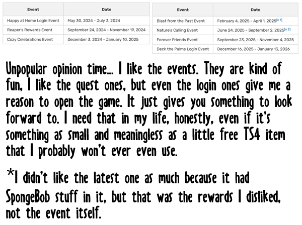 There was one unposted secret this week, it is just an image of the world map of the upcoming Sims 4 world with no text – not a secret. Additionally, one secret (#12) was submitted twice, so possibly if you have a secret missing, you submitted that once twice. No big deal, just an FYI :)