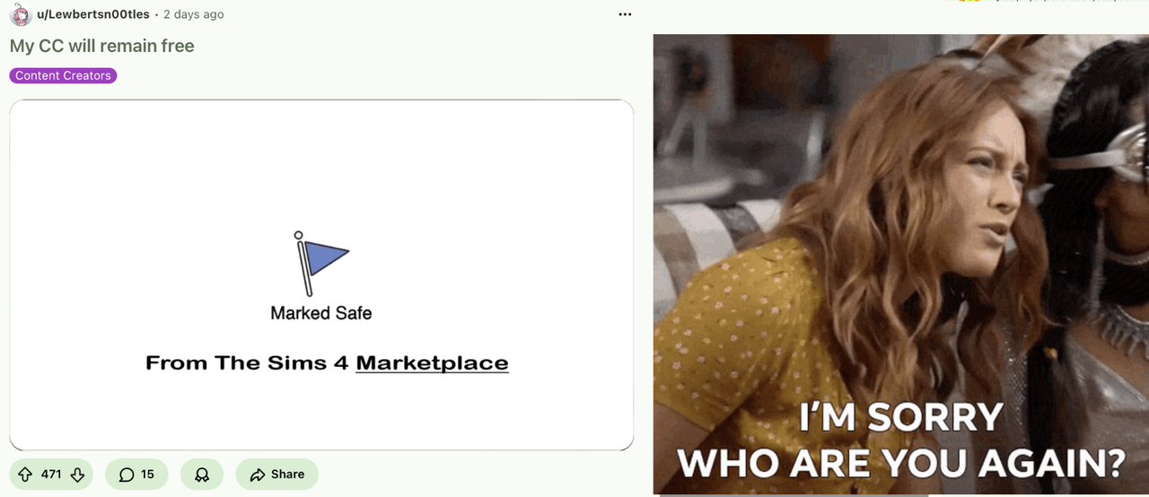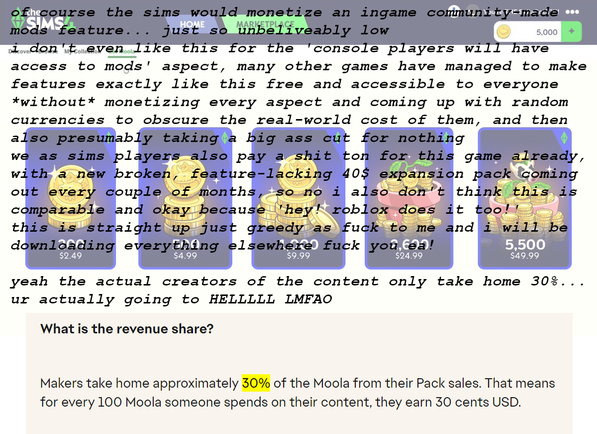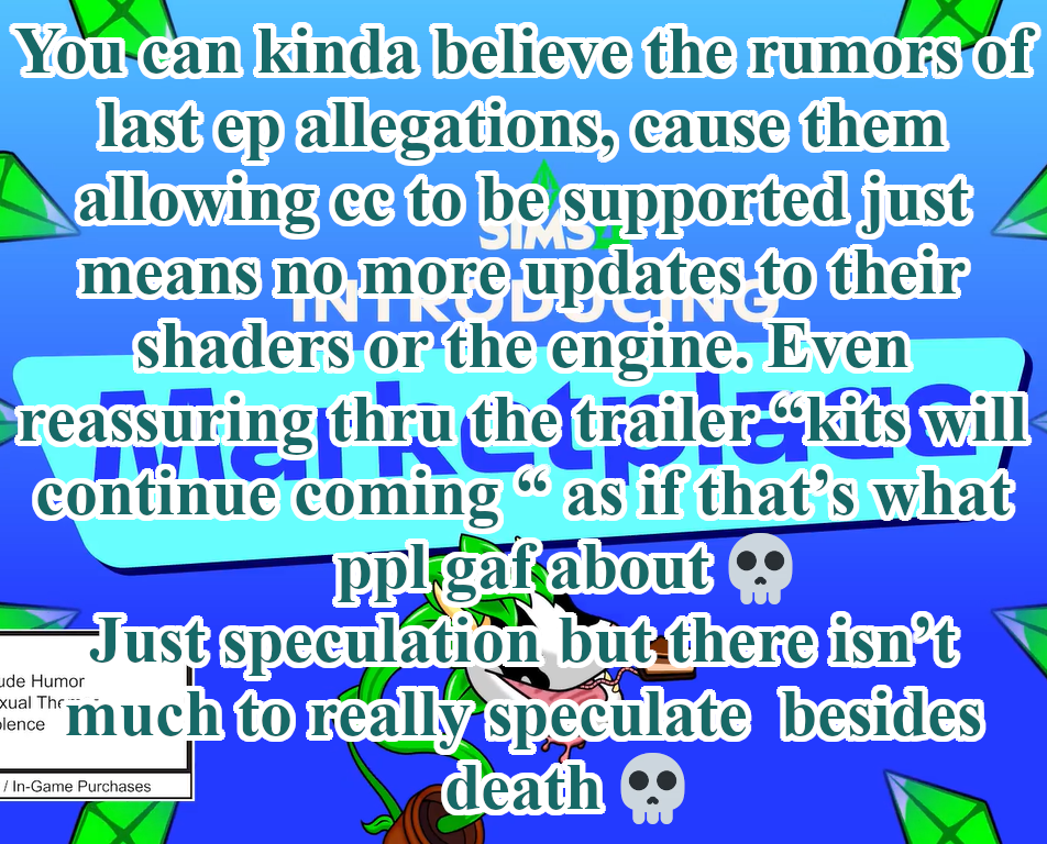 024 - Was also asking the same question. Pathetic pandering from a low level creator. No one would give a shit if they did go to the Marketplace.