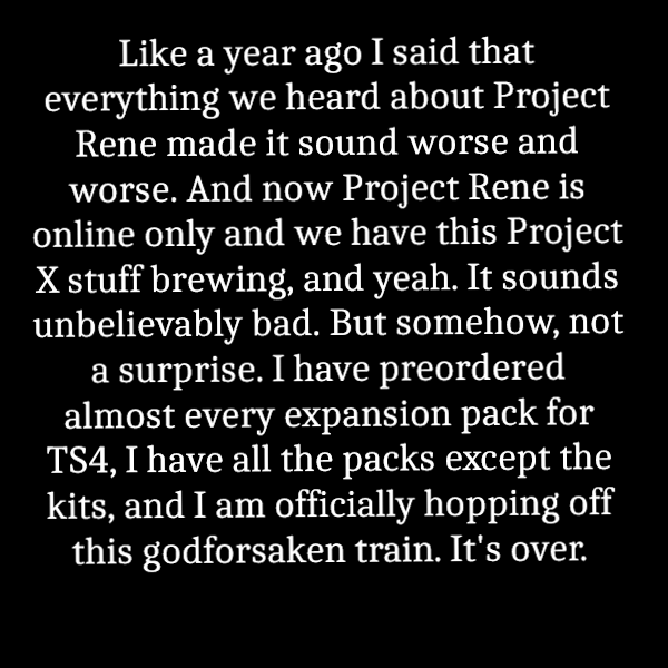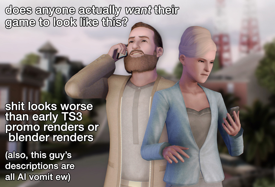 (Anonymous) 2026-03-07 12:41 am (UTC)(link)012 sorta in denial myself. sims 1 is still great but it's old. sims 2 community has become annoying, full of bad rushed "maxis match"(???) EA ts4 conversions. sims 3 still ugly sims. sims 4 is an empty soul sucking void.