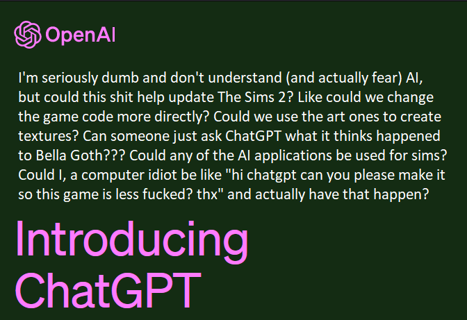 #6 I feel like there are a few simblrs which constantly change names/identities but are always JUST as unhinged as the last time we saw them.